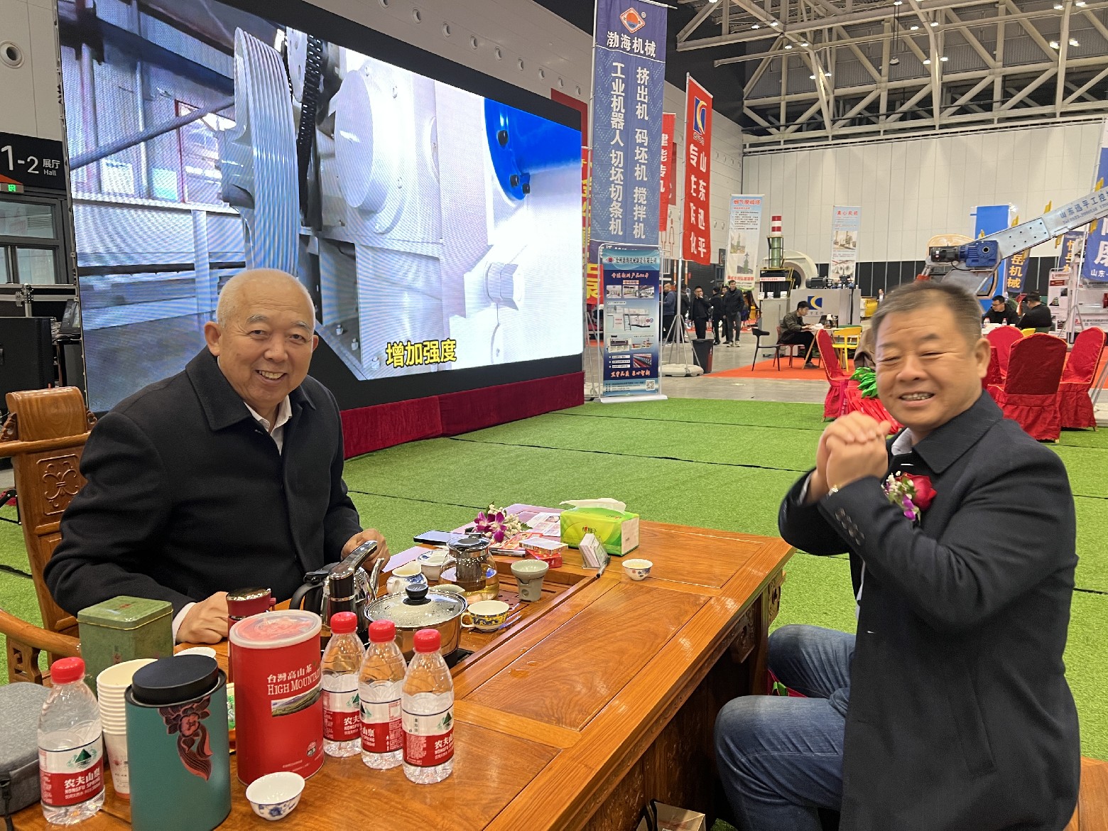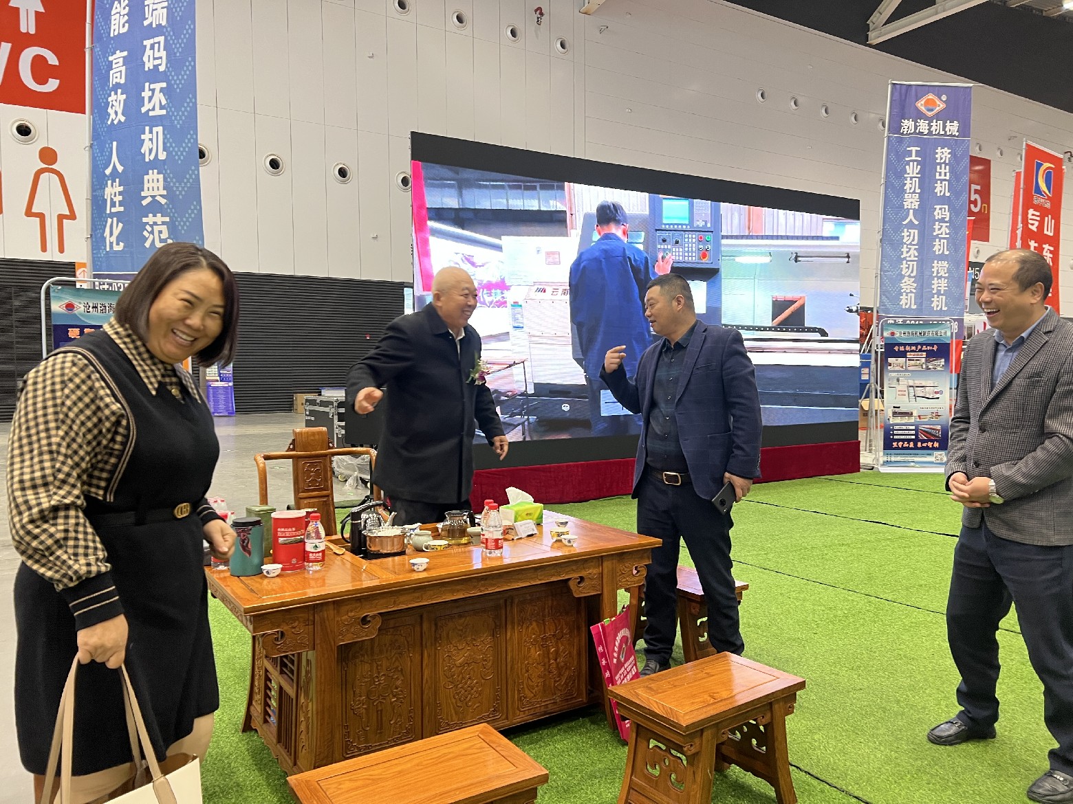行業(yè)領(lǐng)導來到渤海機械的展廳,和董事長張加祥合影并進行親切交談,對我公司的一直以來的工作予以肯定,希望渤海機械作為磚瓦裝備生產(chǎn)制造的資深企業(yè),再接再厲,繼續(xù)為行業(yè)的發(fā)展做出突出的貢獻。